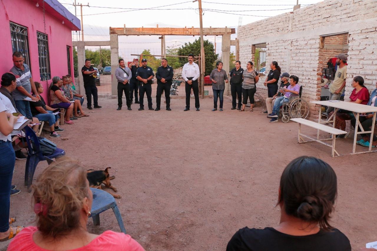 Sosteniendo una reunión con las y los vecinos de mencionado sector de la ciudad, misma que fue encabezada por el Comisario Claudio Cruz Hernández, Jefe de la Policía Preventiva y Tránsito Municipal, en compañía de encargados de las diversas áreas de apoyo de la corporación policial, incluyendo Trabajo Social, UMAV, Unidad Especializada para Menores, Psicólogos, oficiales DARE y personal administrativo de Programas Preventivos, entre otros.